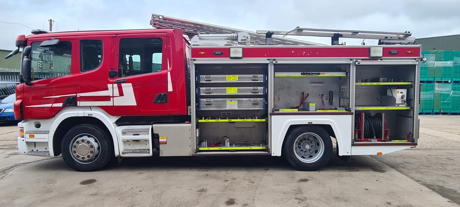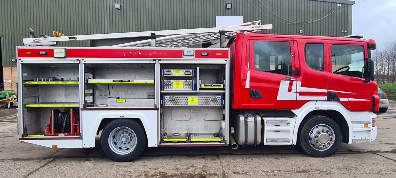 Scania P270 WTLScania P270 270hp 4×2 Mileage 57,046 miles Automatic Transmission Godiva pump 1800L Water 6 seats LED Blues / Siren This vehicle will come fully checked through, and ready for service